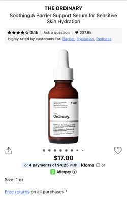The Ordinary Soothing & Barrier Support Serum$10Pasadena, CA