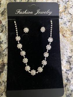 Bridal Jewelry - Bride Silver Necklace Earrings Set Crystal Bridal Wedding Jewelry Set $20Hollywood, FL
