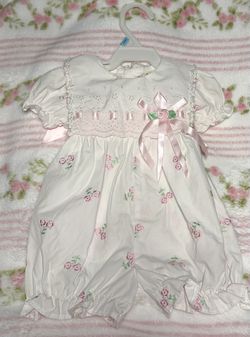 Vintage Baby Togs Romper White W Pink Ribbon Flowers Sz 3-6 Month Embroidered$35Baton Rouge, LA
