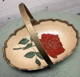 Vintage Brass Basket Rose Painted Jewelry Dish With Handle$35Baton Rouge, LA