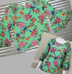 Anthropology Blouse Fig & Flower Floral Bell-Sleeve Top Mint Green Sz S$28Baton Rouge, LA