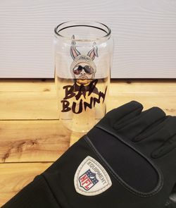 Bad Bunny Clear Glass Tumbler Cup & Men's Black NFL Receiver Gloves! $10San Antonio, TX