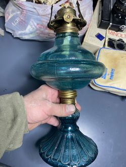Vintage Hong Kong teal blue aqua oil lamp w/chimney 60’s 70’s$15Portland, OR