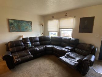 Free power reclining leather sectional. Works fine can help deliver$0Portland, OR