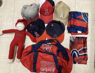 Lot Of 9 Los Angels Baseball Collection Game Promotions Bag Hats Flags Doll 2010$85Irvine, CA