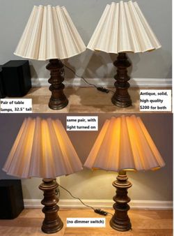 Pair of antique classic bedside table lamps wooden base with silk shade$200Cupertino, CA