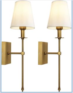 TERLEENART Modern Antique Brass Hardwired Wall Sconces Set of 2 Slim with White Fabric Shade,$70Balch Springs, TX
