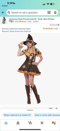 Women's Sassy Scarecrow Costume size L/XL$20Long Beach, CA