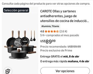 CAROTE Nonstick Pots and Pans, Induction Titanium Cookware Set 16pcs Kitchen Cooking Sets, Pot and Pan Non Stick w/Frying pan (PFOS, PFOA Free)$75Gardena, CA