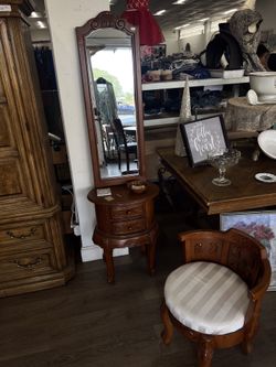 Standing Mirror with Table & Hooks – Wooden Entryway Mirror $150Sanger, CA