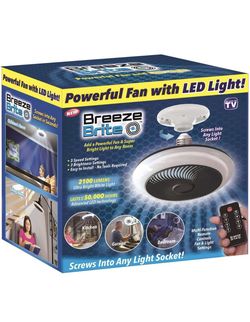 Breeze Brite Ceiling Fan with LED Light, No Tools - Screw into any light socket 3 Speed Settings, 3 Brightness Settings up to 2100 Lumens Includes Mul$25Corona, CA