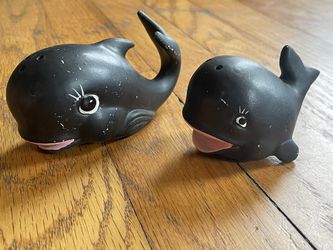 VTG Ceramic Black Whales Salt & Pepper Shakers Mom w Baby Whale Kitsch$12Detour, MD