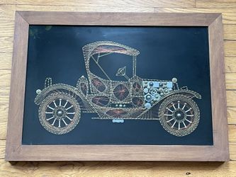 VTG Wire Metal Art Picture Old Fashion Car Art On Black Velvet Wood Frame $75Detour, MD