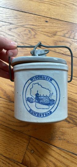Vintage Cheese Crock, Wisconsin Homestead Blue Label, Farmhouse Country Decor, Storage Jar$10Detour, MD