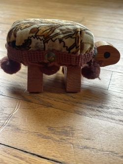 VTG Wooden Cushioned Turtle Sewing Pin Holder Knick Knack Brown Leaf Pattern $10Detour, MD