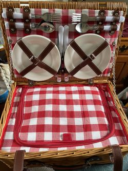 Wicker Picnic Basket Set for 4 People Large Willow Wicker Hamper Insulated $20Detour, MD