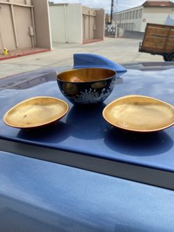 Antique Chinese Foochow Gold Lacquer Bowl with Goldfish and 2 flower dishes$50Los Angeles, CA
