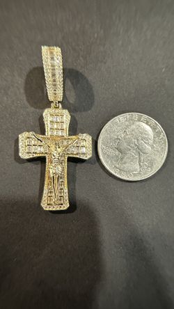 Gold Over 925 Sterling Silver Jesus Cross Pendant W/ Moissonite $120Los Angeles, CA