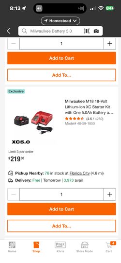 Ryobi Battery Hp Kit$220Homestead, FL