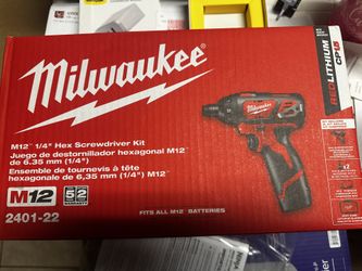Milwaukee M12 Hex Screwdriver + 4 Batterys + Charger + Contractor Bag + 45pcs Impact Bits$180Homestead, FL