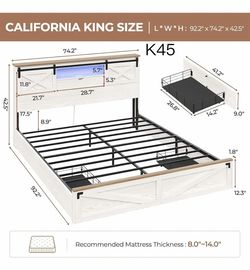 K45-Farmhouse Bed Frame California King Size with Storage Bookcase Headboard, Wooden Cal King Bed with LED Lights, Charging Station, 2 Drawers, Countr$210Atlanta, GA