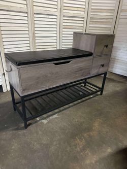 Entryway Bench, Shoe Storage Bench with Flip Top Box and 2 Drawers, Shoe Rack with Removable Seat Cushion and Shoehorn for Entryway/Hallway(39.4in, Gr$80Atlanta, GA