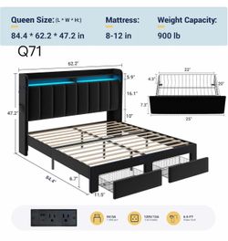 Q71-Velvet Vertical Tufted Queen Upholstered Platform Bed Frame with 2-Tier LED Storage Headboard & 2 Storage Drawers, USB & Type-C Charging Ports, No$175Atlanta, GA
