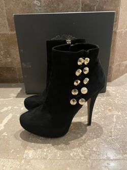 Vince Camuto Jardine Black Suede Boots with Gold Buttons$45Santa Ana, CA