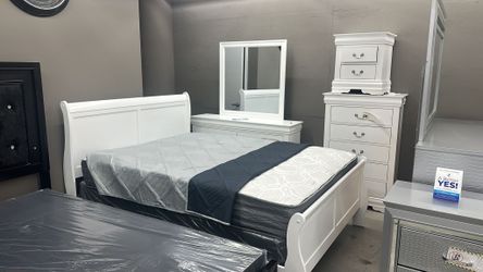 Louis Phillip white Queen Bedroom Group 💛 Queen Bed, Dresser/Top, Nightstand, Chest 💥 Same Day Delivery at Houston area🏎️ $1049🪄$1,049Houston, TX