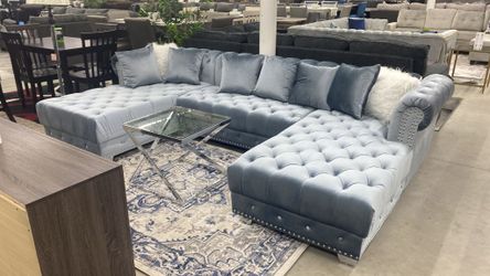 Matilda Gray Velvet Double Chaise Sectional 🤩 Same Day Delivery 🚘$2299⚡💥$2,299Houston, TX