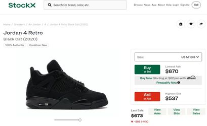 Mint Condition Black Cat 4s 500 Obo Sz10.5 $500Corpus Christi, TX