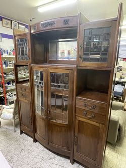 ANTIQUE ART NOVEAU CHINA CABINET CURIO CASE SIDE BOARD BUFFET DISPLAY UNIT LEADED GLASS SKELETON KEYS$799Los Angeles, CA
