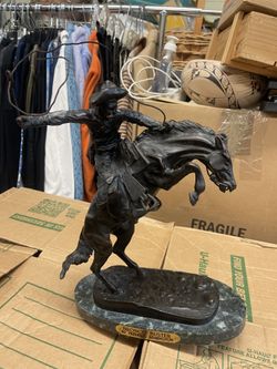 FREDERICK REMINGTON BRONZE SCULPTURE STATUE HORSE COWBOY BRONCO BUSTER ON MARBLE $499Los Angeles, CA