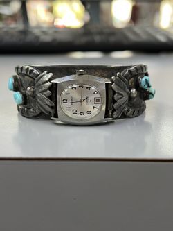 Vintage Seiko Mechanical Watch In Native American Style Open Bangle Sterling Silver Bracelet $450Fort Lauderdale, FL