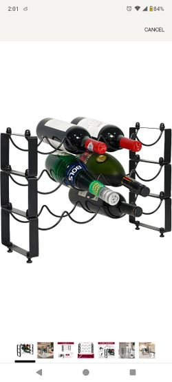 3 Tiered 12-Bottle Wine Rack - Detachable Metal Wine Glass Storage for Cabinet/Countertop, Space-Saving Black Organizer (3)
