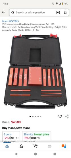 16Pcs Aluminum Alloy Height Measurement Set | 100 Measurements for Woodworking/Table Saw/Drilling | Bright Color Accurate Scale Blocks 1 / 16in - 3 / $25Visalia, CA