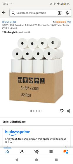 3 1/8" x 230' Premium A Grade POS Thermal Receipt Printer Paper (32Rolls/Case)$50Visalia, CA