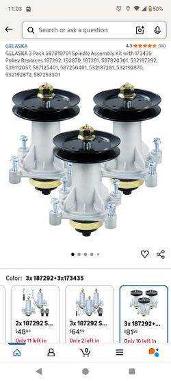 GELASKA 3 Pack 01 Spindle Assembly Kit with 173435 Pulley Replaces 187292, 192870, 187281, 01, 92, 57, 01,$50Visalia, CA