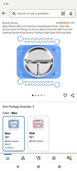 Baby Silicone Mat with Stainless Steel Divided Plate – Non-Slip Suction Base & 4 Straps to Secure Baby Essentials, BPA-Free Self Feeding Placemat for $5Visalia, CA
