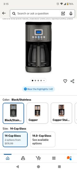 Cuisinart 14-Cup Coffee Maker, Programmable PerfecTemp Glass Carafe Coffee Machine with 1-4 Cup Setting, Brew Strength Control and Brew Pause, Stainle$75Visalia, CA