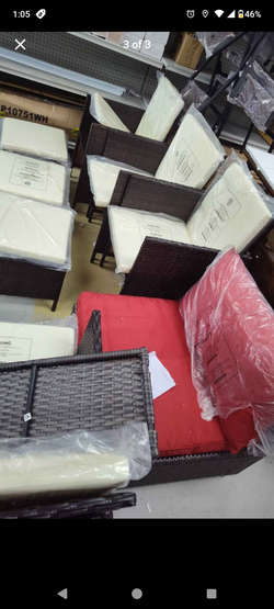 Patio outdoor dinning furniture set 4 stools 4 chairs and table with glass, with extra red cushion chair$240Visalia, CA