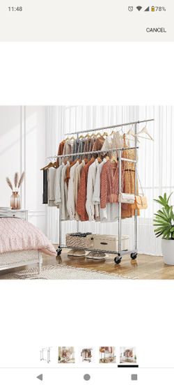 Double Rod Clothing Garment Rack, Rolling Clothes Organizer on Wheels for Hanging Clothes,with 4 hooks, Chrome$50Visalia, CA