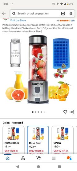 Portable Smoothie blender Glass bottle Mini USB rechargeable 2 battery Handheld Shakes blend Cup USB juicer Cordless Personal smoothies maker mixer (B$48Visalia, CA