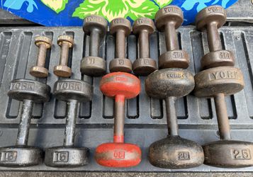 COLLECTABLE YORK DUMBBELLS : (PAIRS OF) 2s = $25 / 7lb. = $90 / 5lb. = $25 / 10lb. = $40 / 15lb. = $75 / 20lb. = $45 / 25lbs, = $100 / NEW YORK IRON$1Deerfield Beach, FL