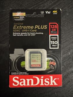 SanDisk 128GB Extreme SDXC UHS-l Memory Card - 150MB/s, C10, U3, V30, 4K UHD, SD Card - SDSDXV5-128G-GNCIN$20Scottsdale, AZ