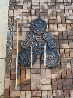 Gym - 210lbs Standard 1” Olympic Plates W/Barbell & Dumbbells$200Riverdale, IL