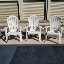 3 Gardner Lawn Chairs White Resin Stackable Patio Furniture Big Outside Slat Seats with Cup Holders$15Altamonte Springs, FL
