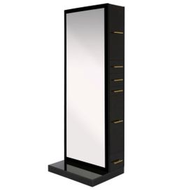 Modena Large Black & Gold Single Sided Styling Station Free Standing Full Length Mirror W/ Storage Cabinets & Drawers$550Orlando, FL