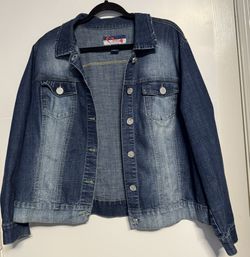 Women’s Blue Denim Jean Jacket Size 18/20 Stretch Rhinestone Buttons $13Katy, TX