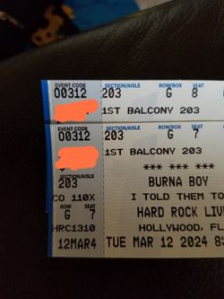 Burna BOY$185Pompano Beach, FL